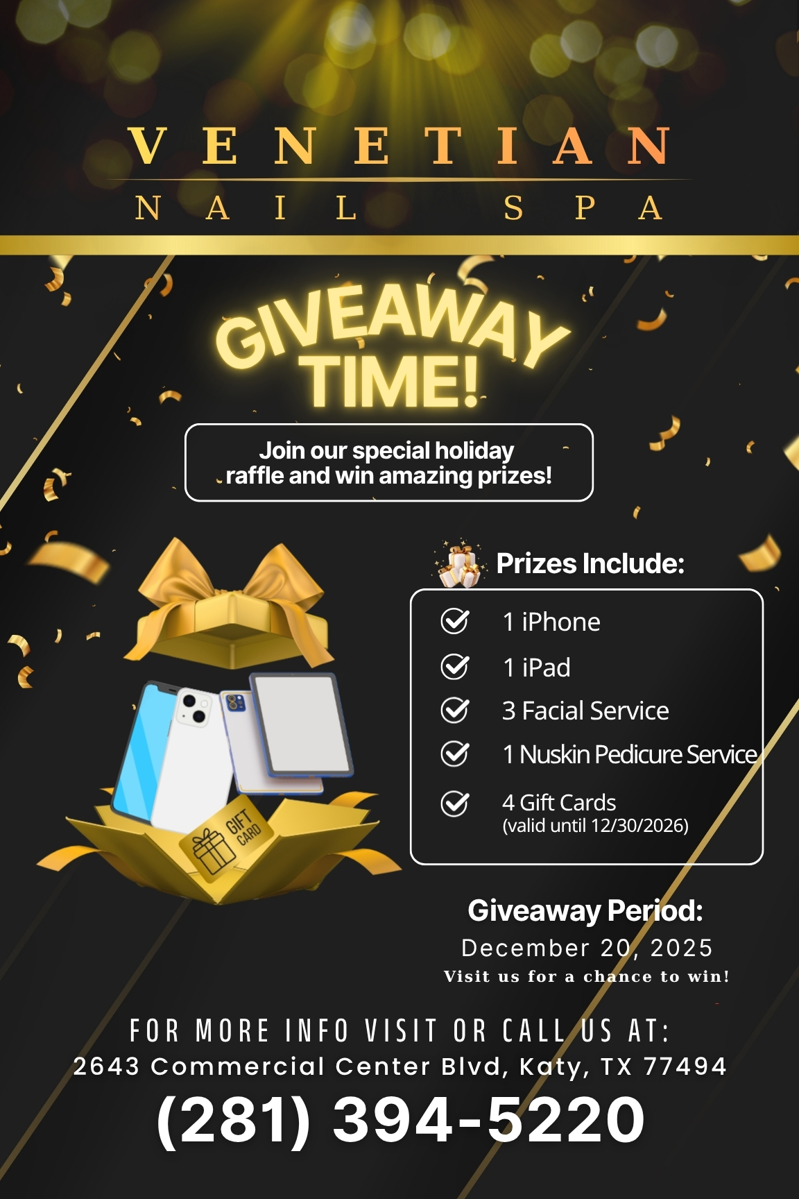 Venetian Nail Spa is a haven of relaxation and serenity, an upscale spa dedicated to your satisfaction. Our professional nail technicians are always attuned, friendly, and responsive to all your needs. We have embodied our signature blend of natural and organic ingredients to maintain the sanitary needs of each individual. At our salon, we take it above and beyond your regular spa experience to make it an amazing and unforgettable one. Through our exceptional service, utmost professionalism, and courtesy, we want to ensure that you will truly relax, rejuvenate, and indulge in our soothing services.