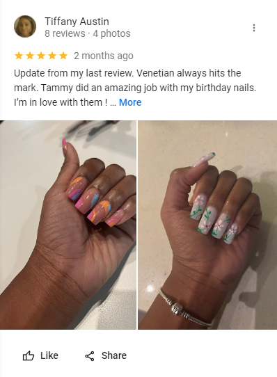 Venetian Nail Spa is a haven of relaxation and serenity, an upscale spa dedicated to your satisfaction. Our professional nail technicians are always attuned, friendly, and responsive to all your needs. We have embodied our signature blend of natural and organic ingredients to maintain the sanitary needs of each individual. At our salon, we take it above and beyond your regular spa experience to make it an amazing and unforgettable one. Through our exceptional service, utmost professionalism, and courtesy, we want to ensure that you will truly relax, rejuvenate, and indulge in our soothing services.